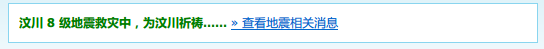 饭否是个俺最常上的网站了,不过自从汶川地震之后,总是有一条关注汶川地震的信息条。我不是不关心国计民生,也不是对灾区的人民无动于衷、置若罔闻,只是这个东西是不是不必总放在这儿啊,更何况你点进去后发现已经很难找到啥真的和抗震救灾有关的消息了,消息条如下图所示: