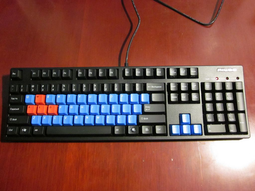 FILCO键盘还赠了四个红色的WASD键帽,来张换上键帽之后的图: